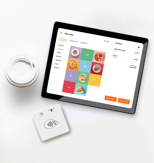 Pair your mobile credit card reader to your device for a minimalist point of sale setup on your countertop.