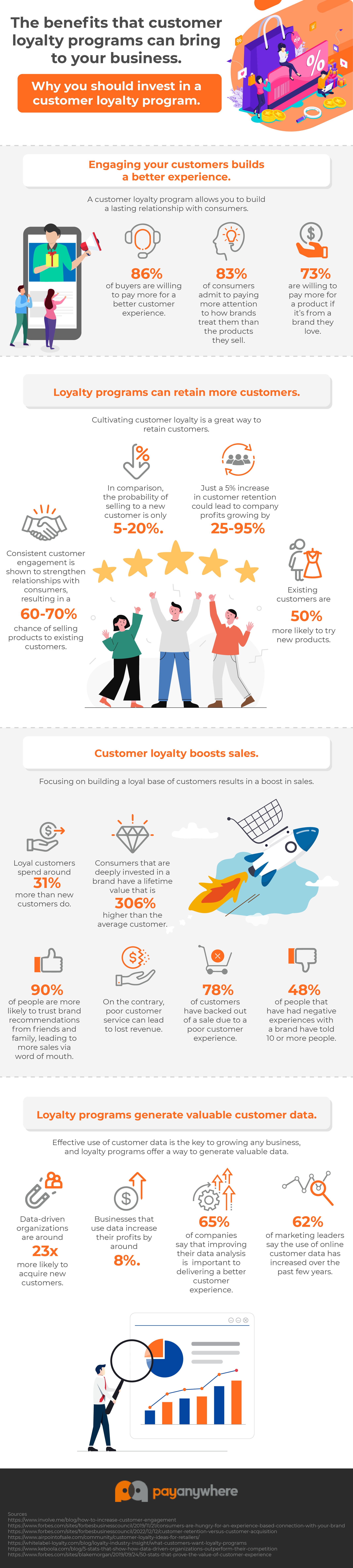 Although it takes time and effort to launch and maintain a rewards program, it’s a lot easier than courting a totally new customer. Only 5-20% of new customers make purchases, a significant drop from the 60-70%of existing shoppers who return to make other buys.