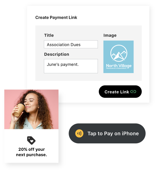 Collect customer payments online through unique payment page links that can be shared in an email, on your website, as a QR code, and more.
