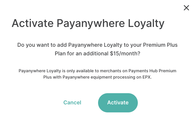 Payanywhere Loyalty is available at an additional cost to merchants on Payments Hub Premium Plus with Payanywhere equipment processing on EPX.