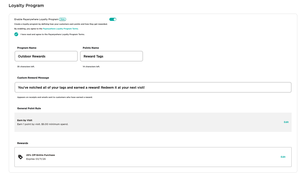 View the Payanywhere Loyalty Guide for instructions on how to build and manage your customer loyalty program.